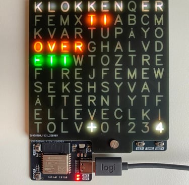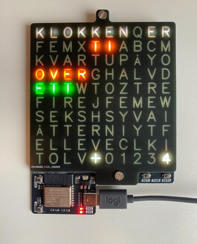 Wordclock based on the ESP32-C3-WROOM microcontroller, with norwegian letters
