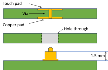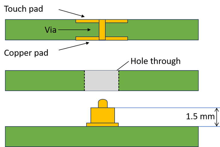 The Completed stack with connection from the touch pad on top to the electronics on the bottom PCB via the pogo-pin
