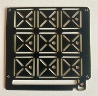 The spacer board with holes drilled for the elctronics and LEDs and pogo-pins