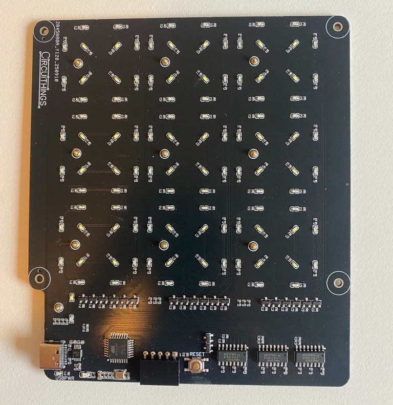 At this point, I decided I wanted to get the board working, not debug an issue I didn’t really know how to resolve. The USB port still delivered 5V, and the bootloader flashing header was still there, meaning I could just continue using the same Arduino Uno I used for bootloader flashing as a programmer and flash code via the SPI interface. That meant losing the serial connection (and thus serial console debugging), but the board and functionality are so simple that it turned out not to matter at all.